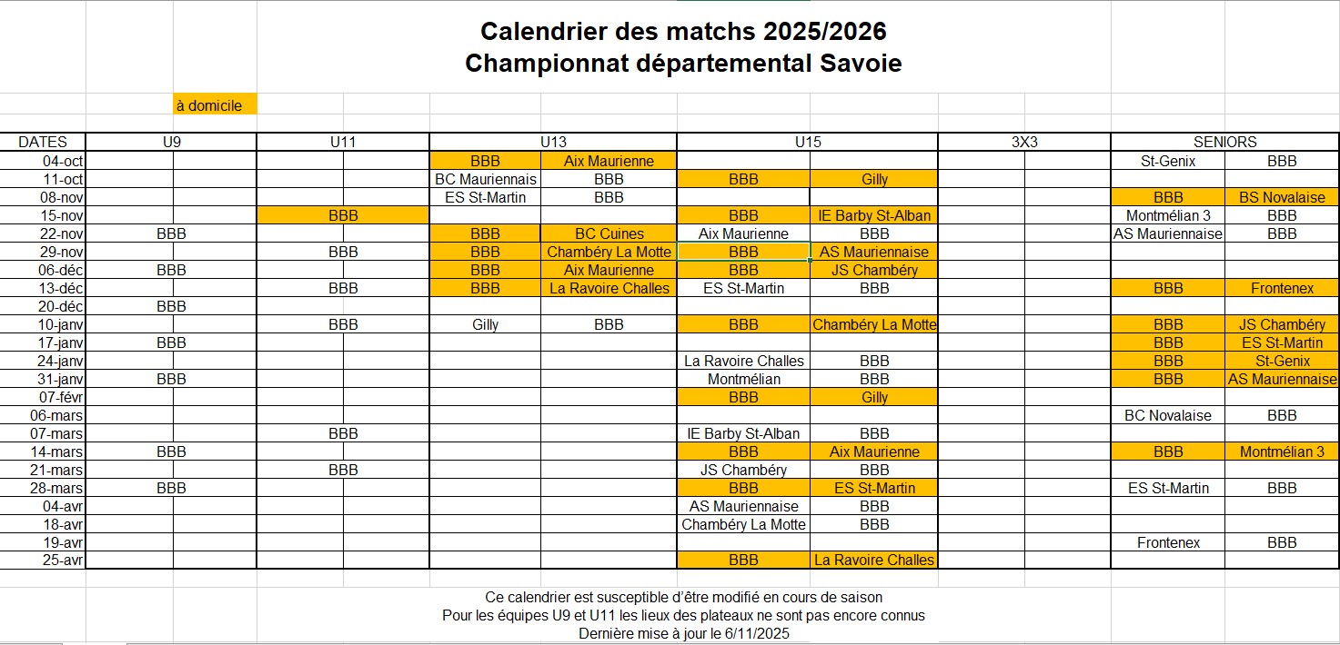 Calendrier des matchs de la saison